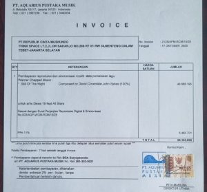 Menurut unggahan di media sosialnya, pendiri Republik Cinta Musikindo itu memamerkan invoice pembayaran royalti sebesar Rp55.153.896, yang dibayarkan langsung dari kas perusahaannya.