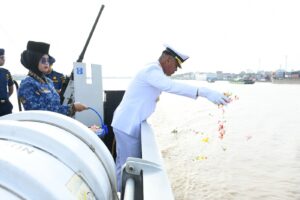 Akarkata.com, Pontianak — TNI AL, Kodaeral XII dalam rangka memperingati Hari Dharma Samudera 2026, Komandan Kodaeral XII, Laksamana Muda TNI Sawa, S.E., M.M., CIQaR., memimpin Upacara Tabur Bunga yang digelar di atas KRI Sembilang-850, Kamis (15/1).