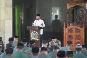 Sambutan Danrem 121/Abw Brigjen TNI Purnomosidi, S.I.P., M.A.P., M.Han., yang dibacakan oleh Kasrem 121/Abw Kolonel Inf Dadang Ismail Marzuki, S.I.P., menyampaikan apresiasi dan ucapan terima kasih kepada Almukarrom Kiyai Syaiful Anam, S.Pdi., selaku Pengasuh Pondok Pesantren Al-Iman, yang telah berkenan hadir untuk memberikan tausiah serta menguraikan hikmah Isra’ Mi’raj kepada seluruh keluarga besar Korem 121/Abw.