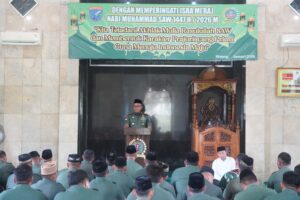 “Melalui peringatan Isra’ Mi’raj ini, diharapkan dapat semakin memperkokoh iman dan takwa kita kepada Allah SWT, sekaligus membangun soliditas, disiplin, dan profesionalisme prajurit serta PNS dalam menjalankan tugas pengabdian kepada bangsa dan negara,” ungkap Kolonel Inf Dadang.
