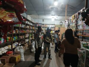 Tidak hanya menyasar pedagang mainan, patroli malam juga dilanjutkan dengan sambang ke toko-toko dan warung yang masih beroperasi.