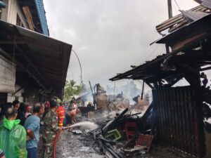 Peristiwa tersebut mengakibatkan sebanyak 10 unit rumah toko (ruko) hangus dilalap api.