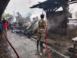 Hingga api berhasil dipadamkan sepenuhnya, anggota Koramil bersama aparat gabungan tetap berada di lokasi untuk membantu pengamanan lanjutan serta pendataan awal pascakebakaran.