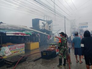 Selain membantu proses pemadaman bersama petugas terkait dan masyarakat, personel TNI juga melakukan evakuasi warga, pengamanan area sekitar, serta memastikan api tidak menjalar ke bangunan lain di sekitar pasar.