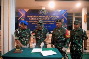 Penyerahan hasil operasi berlangsung di Makorem 121/Abw, Jalan Pangeran Kuning, Kabupaten Sintang, Kalimantan Barat, pada Minggu (25/01/2026).