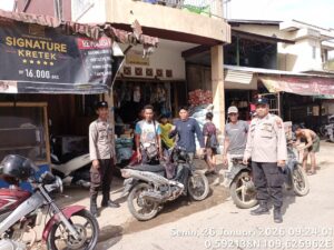 Kegiatan patroli siang pada Senin, 26 Januari 2026, dipimpin oleh Kepala Sentral Pelayanan Kepolisian Terpadu (SPKT) Regu II Polsek Menyuke, Aipda Eko Muslimin, bersama anggota Aipda Heny Wintoko.