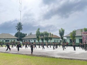 Latihan tersebut diikuti oleh seluruh personel Kodim 1204/Sanggau bersama anggota Koramil jajaran.