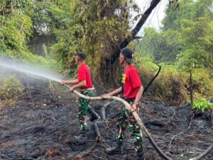 Akarkata.com, Sanggau – Pada Jumat, 30 Januari 2026, prajurit Yonif TP 833/BD menunjukkan aksi cepat tanggap darurat dengan menanggulangi kebakaran hutan di Jalan Sabang Merah 2, Beringin, Kecamatan Kapuas, Kabupaten Sanggau, Kalimantan Barat.