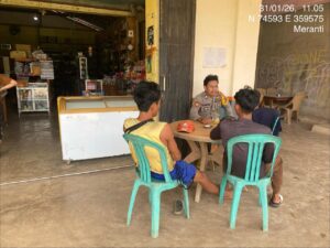 Dalam kegiatan patroli tersebut, anggota Polsek Meranti menyempatkan diri berinteraksi langsung dengan warga di salah satu warung di wilayah Kecamatan Meranti.