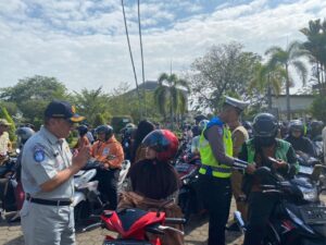 Selain mengecek kelengkapan surat-surat dan kondisi kendaraan, petugas juga memberikan edukasi langsung kepada pengendara mengenai pentingnya keselamatan berlalu lintas.