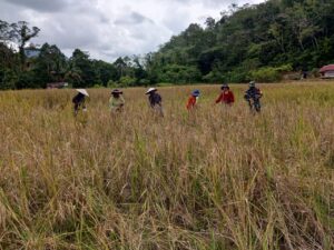 “Melalui kegiatan gotong royong panen padi ini, kami ingin membantu meringankan pekerjaan petani sekaligus mempererat hubungan silaturahmi antara TNI dan masyarakat,” ungkap Kopka Lili Jeri.