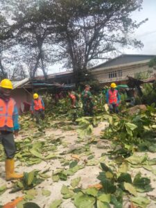 Kegiatan yang dimulai sejak pukul 07.00 WIB tersebut merupakan langkah antisipatif untuk mencegah potensi bahaya akibat pohon tua dan dahan rapuh yang berisiko tumbang.