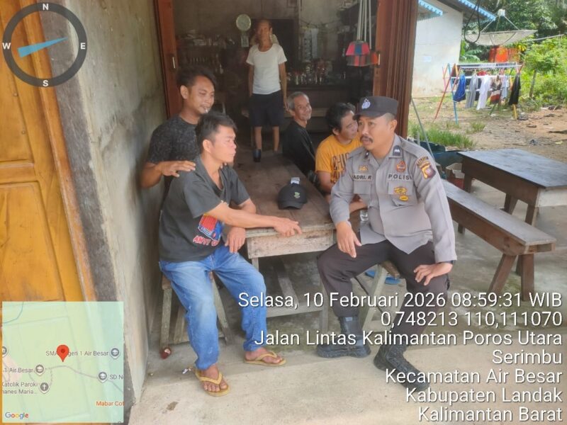 Akarkata.com, Air Besar – Dalam rangka menciptakan situasi keamanan dan ketertiban masyarakat (kamtibmas) yang aman serta kondusif, jajaran Polsek Air Besar, Polres Landak, Polda Kalimantan Barat, kembali mengedepankan pendekatan humanis melalui kegiatan patroli dialogis, Selasa (10/2/2026).