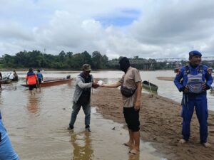 Dalam kegiatan tersebut, kepolisian menyalurkan bantuan bagi rumah ibadah sekaligus membagikan nasi siap saji kepada warga dan petugas yang terlibat dalam pencarian korban tenggelam di Sungai Melawi, Kabupaten Sintang.