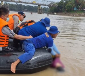 Kedua korban yang berhasil diselamatkan kemudian dibawa ke tepi sungai dalam kondisi selamat.