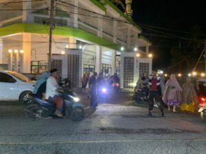 Kehadiran personel kepolisian memberikan rasa aman bagi masyarakat yang menjalankan ibadah malam.