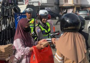 Akarkata.com, Ketapang – Dalam rangka menyemarakkan bulan suci Ramadan, Satuan Lalu Lintas (Satlantas) Polres Ketapang membagikan takjil gratis kepada pengendara di kawasan Pos Ale-Ale, Jumat sore (20/2/2026).
