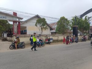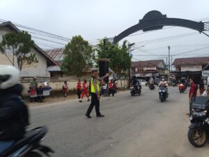 Akarkata.com, Ngabang – Personel Lalu Lintas Polsek Ngabang, Polres Landak, melaksanakan kegiatan pengaturan arus lalu lintas atau strong point pagi di sejumlah titik rawan kepadatan kendaraan, Senin (23/2/2026).
