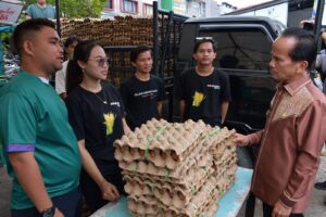 Telur ayam dijual Rp55.000 per rak dengan jumlah 950 rak, di pasaran harga telur biasanya berada di kisaran Rp60.000 hingga Rp63.000 per rak.