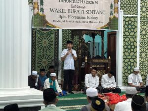 Wakil Bupati Sintang, Florensius Ronny, mengunjungi Masjid Jami’ Al-Huda yang berada di Desa Merarai Dua, Kecamatan Sungai Tebelian, Rabu (25/2/2026).