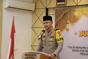 Kapolres menyampaikan bahwa kegiatan buka bersama merupakan sarana memperkuat hubungan kemitraan antara kepolisian dan insan pers.