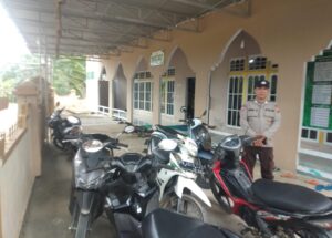 Selama kegiatan berlangsung, petugas memantau situasi di sekitar masjid serta mengawasi area parkir kendaraan jamaah.