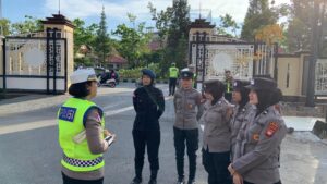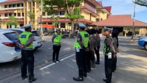 Personel pengamanan mengatur arus lalu lintas agar kegiatan berjalan tertib dan tidak mengganggu pengguna jalan.