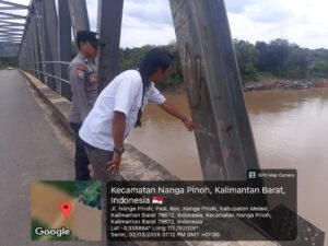 Akarkata.com, Melawi – Polsek Nanga Pinoh Polres Melawi Polda Kalimantan Barat bergerak cepat menindaklanjuti laporan masyarakat terkait hilangnya besi pengaman di Jembatan Melawi II yang berada di Desa Pall, Kecamatan Nanga Pinoh, Kabupaten Melawi, Senin (02/03/2026).