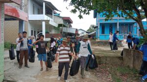Dengan semangat gotong royong, para peserta kegiatan memungut sampah, membersihkan saluran air, serta menata kembali lingkungan agar terlihat lebih rapi dan nyaman.