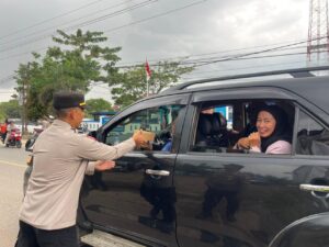 “Mengedepankan senyum, sapa, dan salam, kami juga mengimbau kepada para pengendara agar selalu berhati-hati di jalan, mematuhi aturan lalu lintas, serta memprioritaskan keselamatan,” ujar AKP Bhakti Juni Ardhi.
