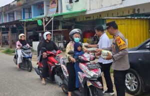 Personel Polsek Kapuas bersama anggota Bhayangkari Ranting Kapuas turun langsung ke lapangan untuk membagikan paket takjil kepada warga.
