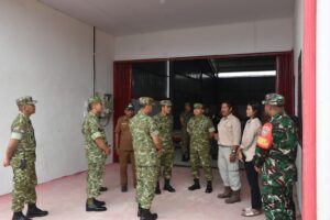 Pangdam meninjau secara langsung kondisi bangunan yang sedang dalam proses pembangunan, sekaligus berdialog dengan personel yang terlibat dalam kegiatan tersebut.