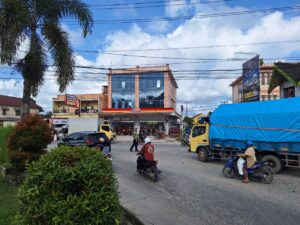 Kawasan Tugu Jam dikenal sebagai pusat aktivitas ekonomi dan pemerintahan di Sintang, sehingga volume kendaraan di area tersebut cenderung tinggi setiap hari.