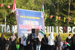 Para peserta secara bergantian menyampaikan orasi yang berisi seruan solidaritas internasional serta kritik terhadap kebijakan global yang dinilai tidak berpihak kepada Palestina.