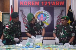 Akarkata.com, Pontianak — Satuan Tugas Pengamanan Perbatasan (Satgas Pamtas) RI-Malaysia Yonarhanud 1/Pbc Kostrad di bawah Komando Operasi Korem 121/Alambhana Wanawai (Abw) kembali menorehkan prestasi membanggakan dengan menggagalkan upaya penyelundupan narkotika jenis sabu dalam jumlah besar di wilayah perbatasan Kalimantan Barat.
