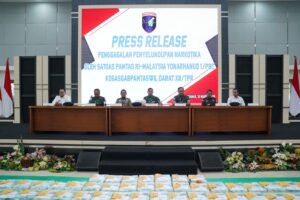 Akarkata.com, Kubu Raya — Panglima Kodam XII/Tanjungpura Mayjen TNI Novi Rubadi Sugito, S.I.P., M.Si. memimpin langsung kegiatan press release terkait keberhasilan penggagalan penyelundupan narkotika jenis sabu di wilayah perbatasan Republik Indonesia–Malaysia.