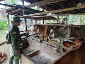 Para peternak sapi menyambut baik kehadiran anggota Koramil yang turun langsung ke lapangan.
