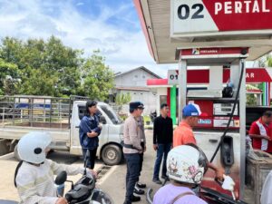 Di lokasi SPBU, petugas tidak hanya melakukan pengawasan, tetapi juga aktif berinteraksi dengan masyarakat.