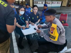 Pemeriksaan kesehatan ini menjadi langkah preventif guna memastikan seluruh personel berada dalam kondisi fisik yang prima selama menjalankan tugas pelayanan dan pengamanan masyarakat di lapangan.