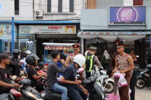 Pengaturan lalu lintas juga dilakukan secara optimal agar pembagian takjil tidak mengganggu arus kendaraan di lokasi kegiatan.