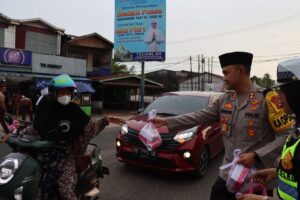 Dengan penuh kehangatan, ia bersama jajaran pejabat utama membagikan paket takjil kepada pengendara roda dua maupun roda empat yang melintas.