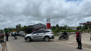 Personel kepolisian melakukan pemantauan guna memastikan distribusi BBM berjalan lancar serta tidak terjadi antrean panjang yang berpotensi memicu keributan atau gangguan keamanan.