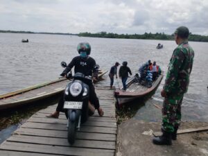 Kopda Ariadi, salah satu anggota Koramil yang terlibat dalam kegiatan tersebut, terlihat aktif berinteraksi dengan masyarakat dan operator perahu.