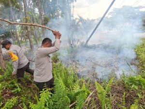 Satlantas dan Polsek Nanga Pinoh Gerak Cepat Padamkan Kebakaran Lahan di Area Yayasan Emaus