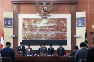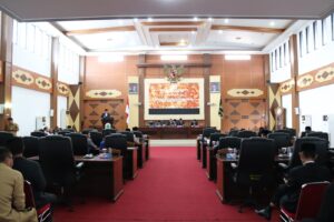 Suasana rapat berlangsung dengan tertib dan khidmat, mencerminkan keseriusan seluruh pihak dalam membahas laporan pertanggungjawaban kepala daerah sebagai bagian dari mekanisme pengawasan legislatif terhadap jalannya pemerintahan.