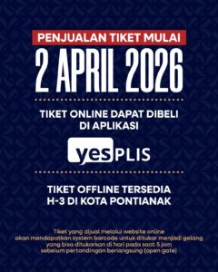 Sementara itu, bagi masyarakat yang ingin membeli tiket secara langsung, panitia juga menyediakan penjualan offline melalui loket fisik di Kota Pontianak.