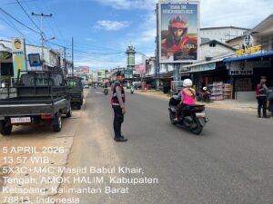 Akarkata.com, Ketapang, Kalbar – Dalam upaya menjaga keamanan dan ketertiban masyarakat di wilayah Kota Ketapang, personel Satuan Samapta Polres Ketapang melaksanakan patroli sambang warga pada Minggu (05/04/2026) pukul 14.00 WIB.