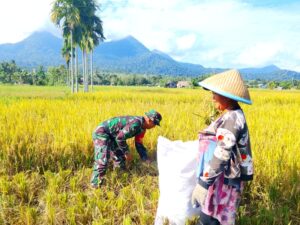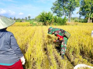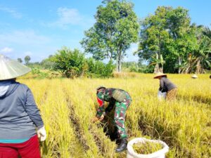 Dalam kegiatan tersebut, Sertu Hendri turut membantu para petani selama proses panen berlangsung.