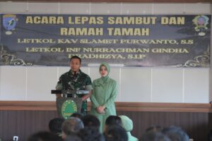 Setelah prosesi penyambutan pejabat baru selesai, kegiatan dilanjutkan dengan acara pelepasan pejabat lama, Letkol Kav Slamet Purwanto, S.Sos., beserta istri.