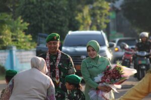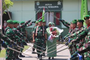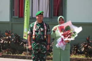 Suasana haru tidak dapat disembunyikan ketika para perwira, prajurit, dan anggota Persit memberikan ucapan selamat jalan kepada Letkol Kav Slamet Purwanto, S.Sos., dan istri.